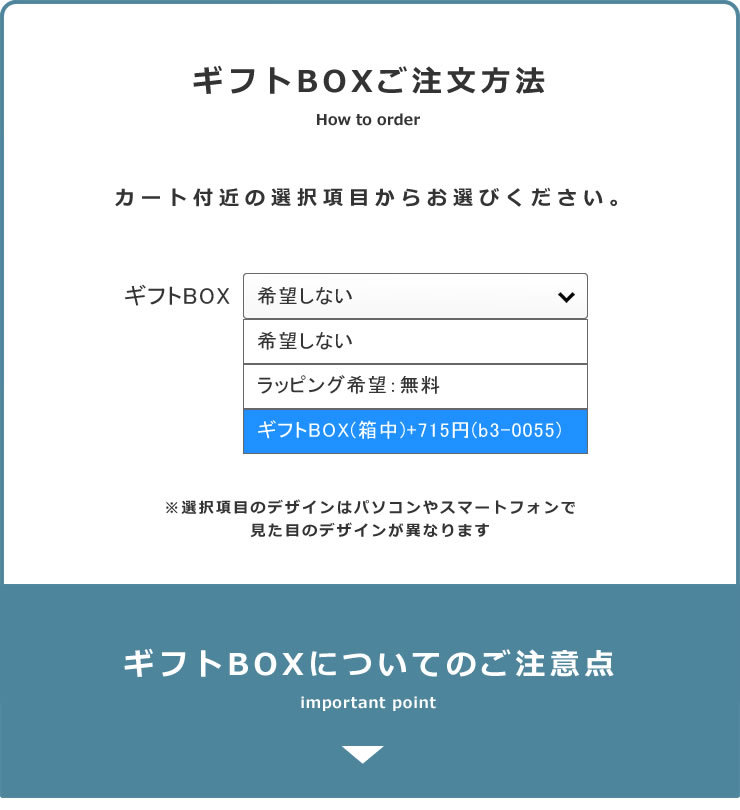 ・ボックスの追加料金はシステムの仕様上、ご注文時に反映されません