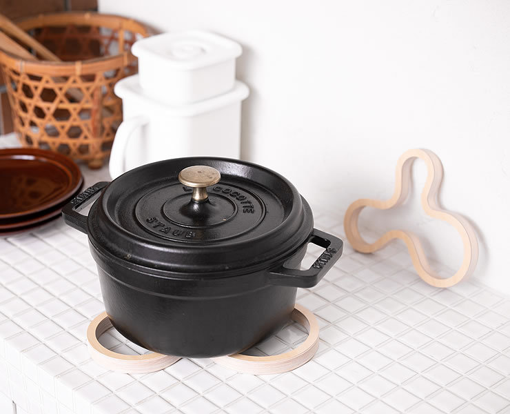 食卓でのお鍋の際や、キッチン・ダイニングでフライパンや鍋・やかんなどをちょっと置いておきたい時など便利にお使いいただけます。