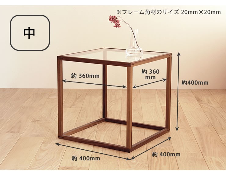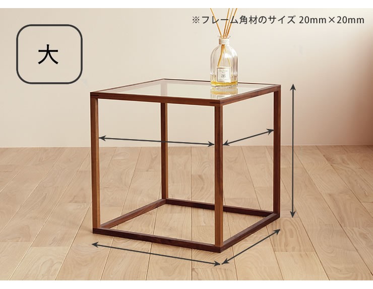 | 材質 | フレーム:ウォールナット材 ガラス:4mm厚強化ガラス |