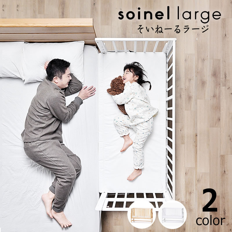 「そいねーるラージ」は、ベッド派のご家庭も、ふとんで寝る派のご家庭でも、赤ちゃんと添い寝できるベビ−ベッドです。大人のベッドの高さと合わせ、段差なく繋げて使用できます。 一つのベッドで一緒に寝るよりも気楽で、別々で寝るよりも安心して眠れるので、親子が一緒に寝られるわずかな期間をより素敵な時間にできます。