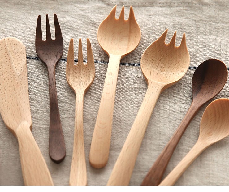木のカトラリーはお料理の熱が伝わりにくいので、シルバーなどようにお口にいれた瞬間「あつっ!」ということが起こりにくいのが特長です。