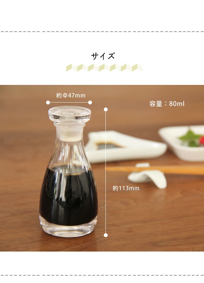 醤油差しに必要な機能は、何をおいても液だれしないこと。 その機能を追求し完成されたのが、こちらの醤油差しです。余計な装飾は一切省き、使いやすさを徹底的に考慮しています。鮮度が落ちないうちに使い切れるようにと、容量は80mlに設定 。醤油をおいしく保ちつつ、食卓に馴染む一生もののアイテムです。
