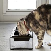 「ペットフードボウルスタンドセット タワー トール」は、シンプルなデザインのボウルとスタンドのセット。モノトーンの落ち着いた雰囲気は、生活感が出がちなペット用品をインテリアの一部に進化させてくれます。