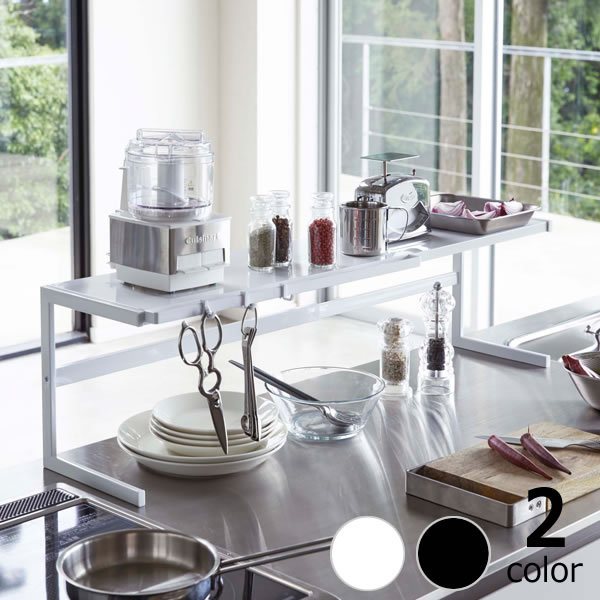 伸縮するのでキッチンの使う場所に合わせて調整できる丈夫なスチール製サポートラックです。調理エリアに水まわりエリア・加熱調理エリアとそれぞれの場所でキッチン作業のサポートをしてくれます。