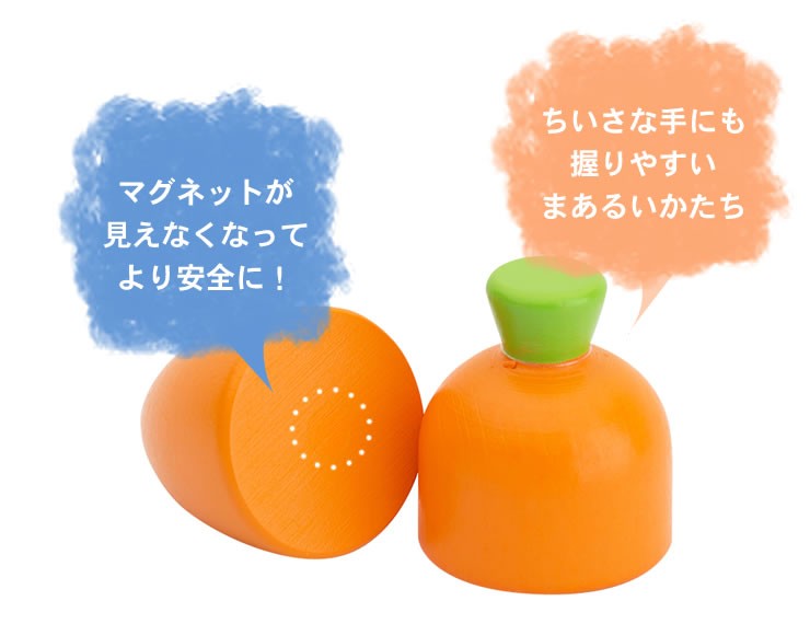 マグネットを木栓でカバーし断面を平らにした「リアルフラット構造」を採用。 美しいだけでなく安全性も向上しました。さらに、お子さまに楽しく遊んでいただけるようにデザインもリニューアル。