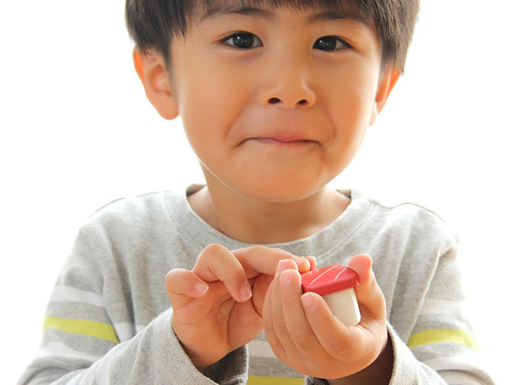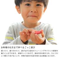 握ったり、盛り付けたり、遊びながら指先のトレーニングやバランス感覚を養うことができます。本物そっくりなので、食材の形を覚えられ、ひとつひとつ教えてあげることで、本物の食材の名前を覚えるお勉強になります。