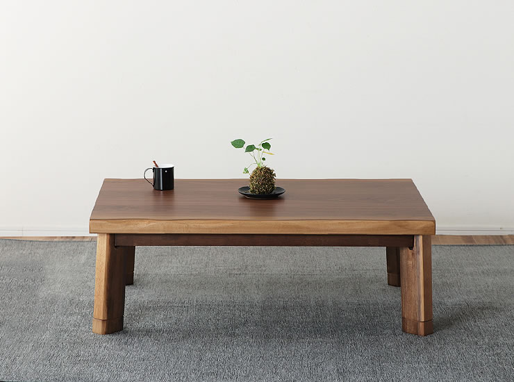 木目の美しいウォールナットの天板を使った、落ち着きのあるこたつテーブル。