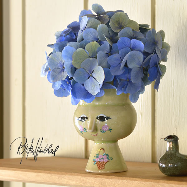 「The seasos」は80年代にビヨン・ヴィンブラッドにより制作されたフィギュアシリーズをベースにビヨンがかつて表現してきた季節を取り入れ、新たな解釈としてデザインされました。「The seasons」の第2弾のSUMMERは、バスケットいっぱいにバラを抱え微笑む姿が愛おしいフラワーベース。両頬にもおそろいの花をつけかわいらしさを演出。やわらかい黄緑色の釉薬で色付けされたことにより、独特の味わい深い雰囲気を醸し出し、フォルムの美しさがより際立ちます。小さな花瓶や鉢としてお楽しみいただけます。