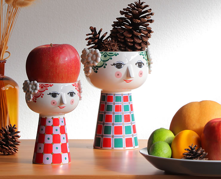 優しい笑みを浮かべた独特の雰囲気の女性。美しいその頭部に花がくるので、様々な雰囲気を楽しめます。花器として、オブジェとしてもおすすめです。