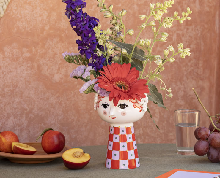 優しい笑みを浮かべた独特の雰囲気の女性。美しいその頭部に花がくるので、様々な雰囲気を楽しめます。花器として、オブジェとしてもおすすめです。
