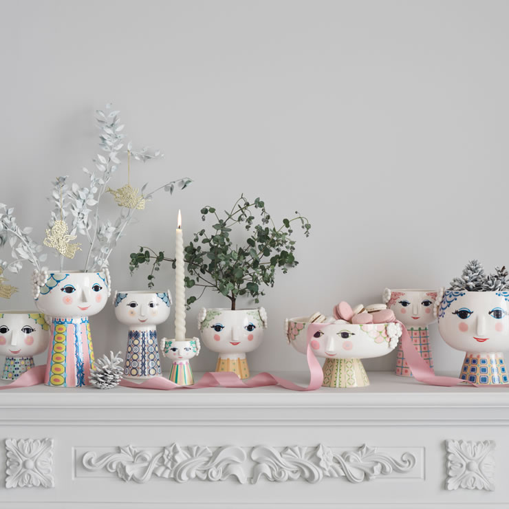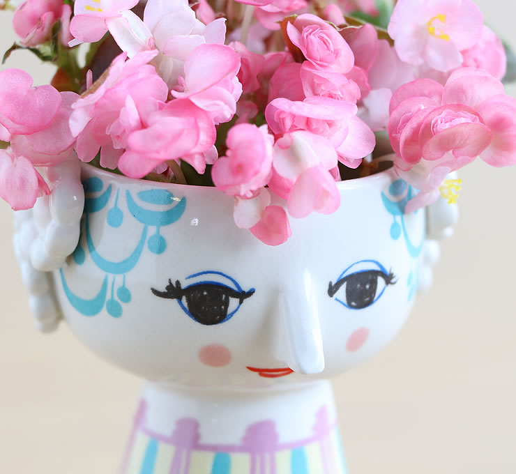 優しい笑みを浮かべた独特の雰囲気の女性。美しいその頭部に様々な物を入れて楽しめます。花器として、オブジェとしてもおすすめです。