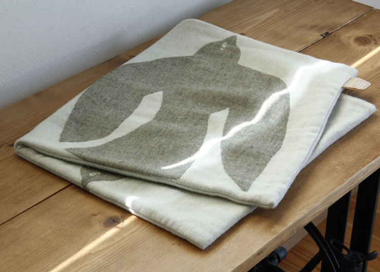 暖かなメリノウールを使用した少し贅沢なクッションカバーです。ユニークなモチーフと楽しい色使いのクッションカバーは、インテリアのアクセントにもなります。