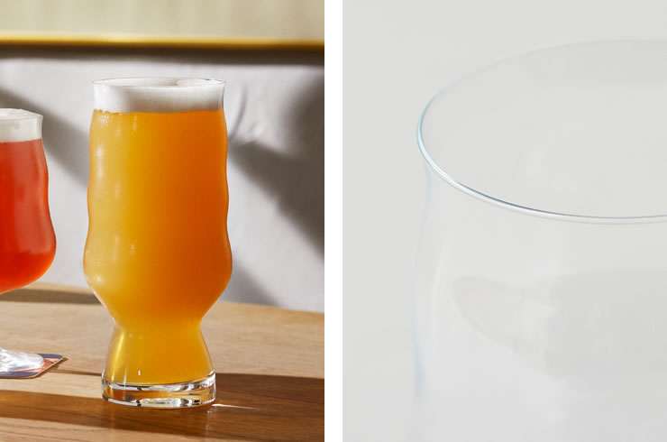 グラス下部に細いウエストがあることで、ビールを注いだりグラスを傾けて飲んだ時に液体が動き、泡立ちが良くアロマが放出され易い形状のビアグラスです。グラス上部が狭くなっていることによってホップの香りが保たれ、飲んだ時にIPAビールの華やかな香りと味わいを存分に楽しめます。