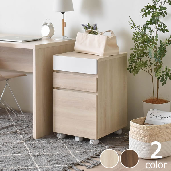 北欧テイストのツートンの色合いがとってもおしゃれなサイドチェスト。鏡面カラーと木目調の色の相性が良く、どんなお部屋にもスッと溶け込みやすいシンプルなデザイン。デスクの下でも収納できる使いやすいコンパクトサイズです。