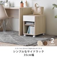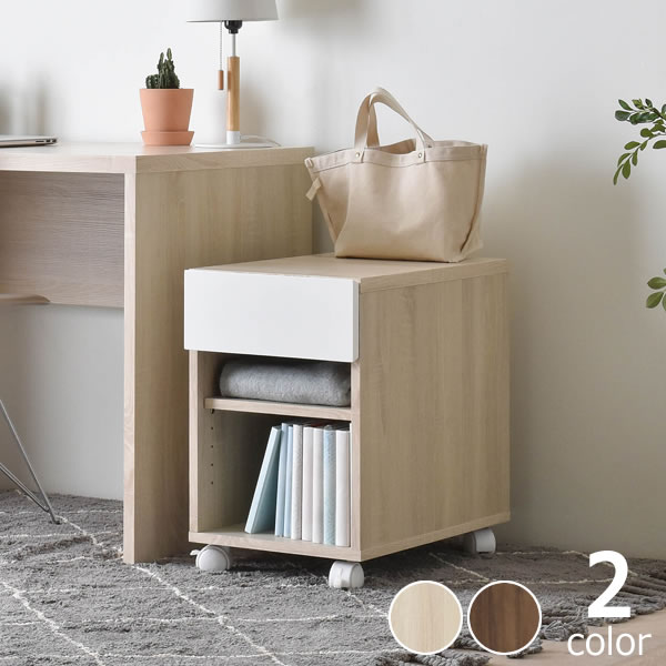 北欧テイストのツートンの色合いがとってもおしゃれなサイドラック。鏡面カラーと木目調の色の相性が良く、どんなお部屋にもスッと溶け込みやすいシンプルなデザイン。デスクの下でも余裕をもって収納できる使いやすいコンパクトサイズです。