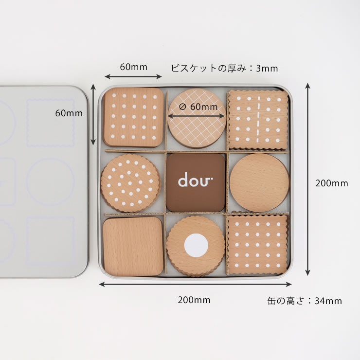 | サイズ | ケース:幅200×奥200×高34(mm) ビスケット:幅60×奥60×高3(mm) |