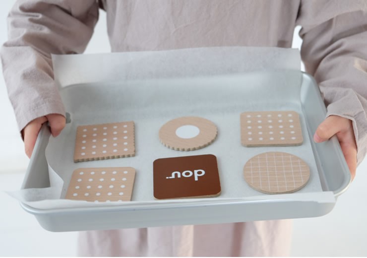 お菓子のような見た目なので、おままごとのアイテムとしても遊んでいただけます。まだ文字が読めないお子さまでも、楽しく遊んでいるうちに自然とひらがなに触れることができます。