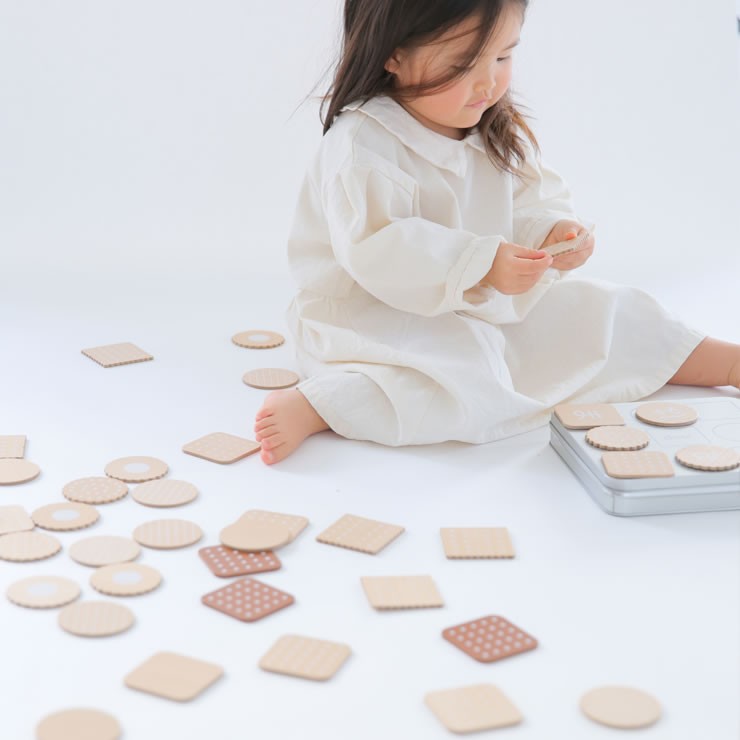 お子さまの知育玩具として、お誕生日や出産祝いにプレゼントされると喜ばれます。ビスケットの絵が描かれているおしゃれなボックスに入っているので、ギフトにぴったりです。