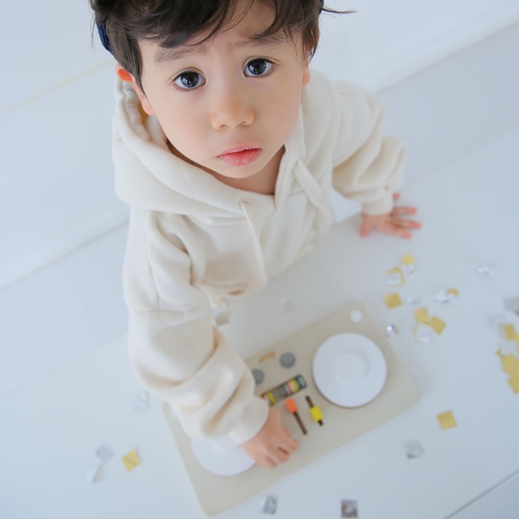 ターンテーブルを強くまわせば強い音に、弱くまわせばやさしい音を奏でます。左右音が違うので自分で音をmixさせてリズムを刻むことができます。やさしい音色は子どもの心の発達にも効果的だと言われています。