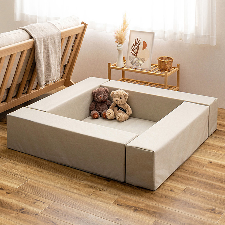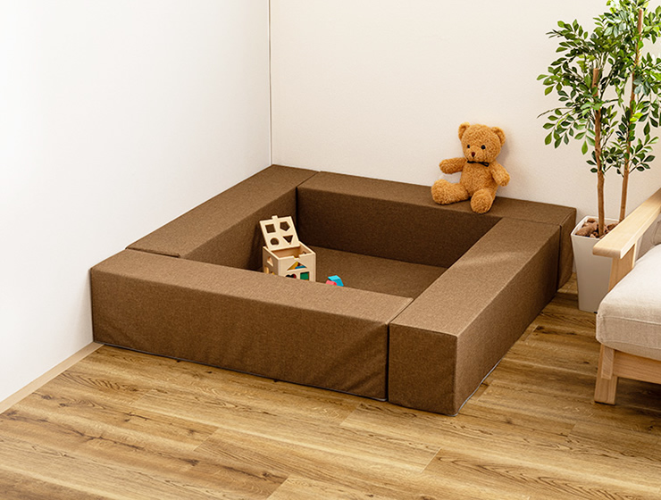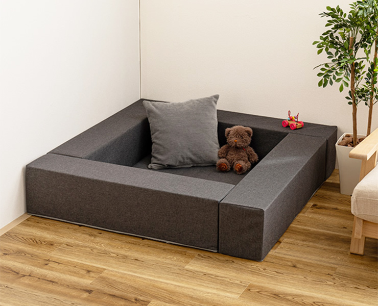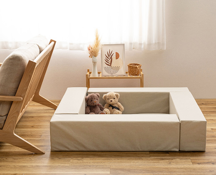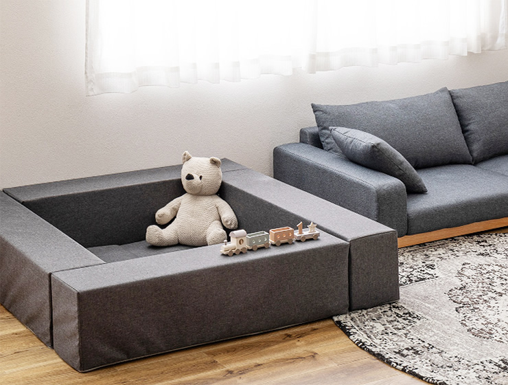ありそうでなかった、お部屋にちょこっと置けるキッズコーナー。家具やカーテンと合わせやすい、やさしい色のファブリック素材で、まるでお店のような、おしゃれなキッズコーナーをご家庭で再現いただけます。