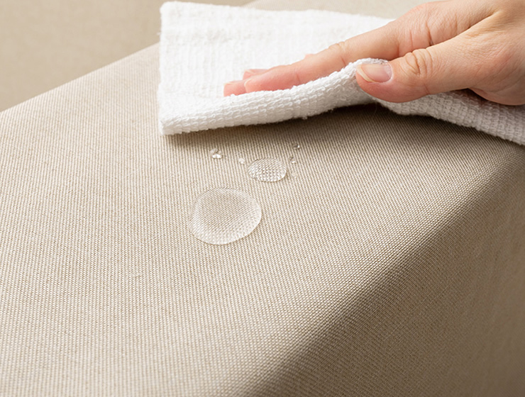 水をはじく素材のため、飲み物などをこぼしてもサッと拭き取ることができます。お手入れしやすいのもうれしいポイントです。