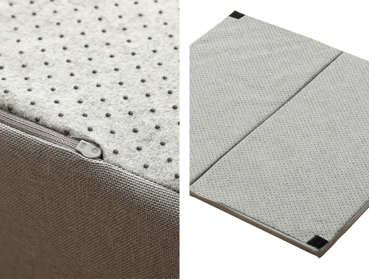 マットの四隅には、幅の広い面ファスナーが付いているので、簡単にしっかりと設置できます。