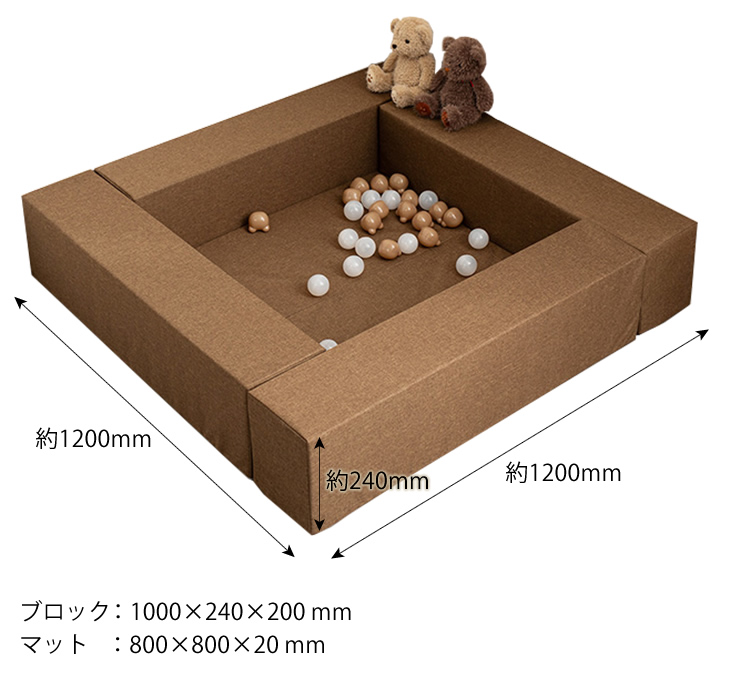 | サイズ | 設置サイズ:幅約1200×奥1200×高240(mm) ブロック:幅1000×奥240×高200(mm) マット:幅800×奥800×厚20(mm) |