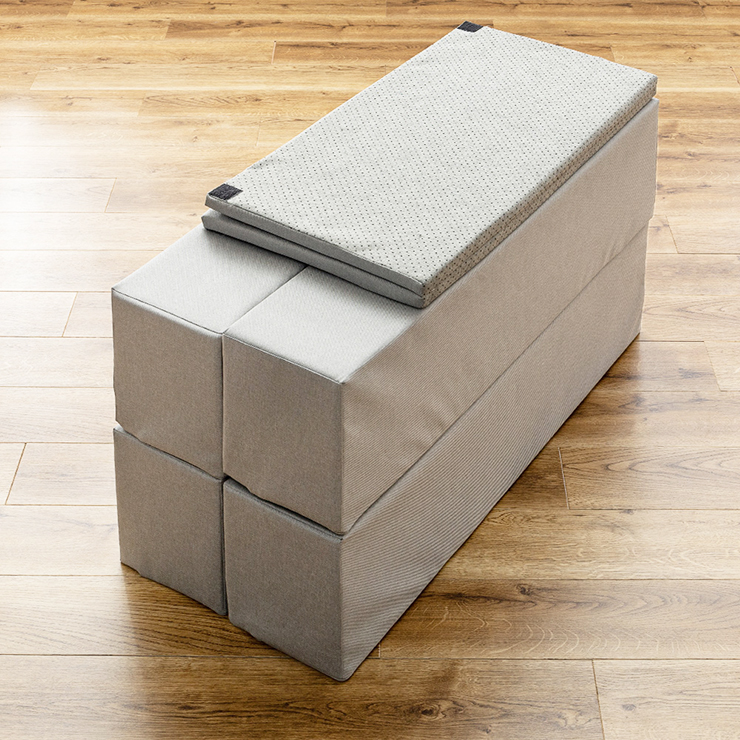ブロック側面の面ファスナー同士を合わせて組み立て、裏面から面ファスナーで固定するだけ! 軽量設計なので、女性の方でもラクラク組み立て可能です。
