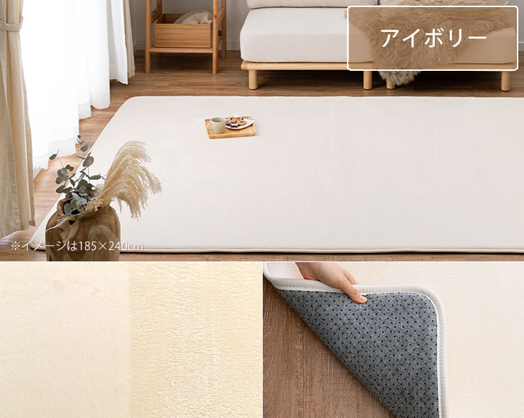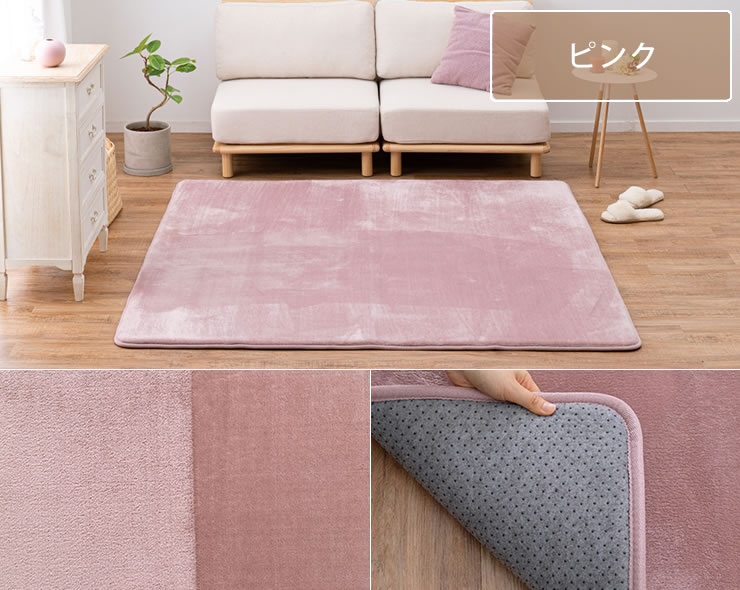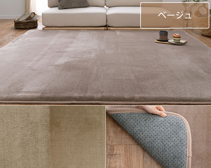 毛足が短めでゴミが溜まりにくく、掃除機やコロコロで簡単にお手入れができます。裏面には滑り止めが付いているため、しっかり固定され掃除機が掛けやすいのも嬉しいポイントです。