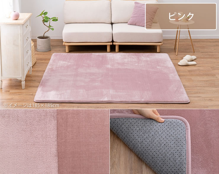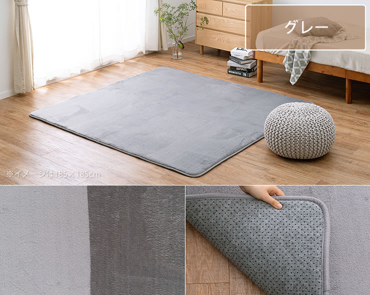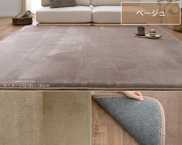 毛足が短めでゴミが溜まりにくく、掃除機やコロコロで簡単にお手入れができます。裏面には滑り止めが付いているため、しっかり固定され掃除機が掛けやすいのも嬉しいポイントです。