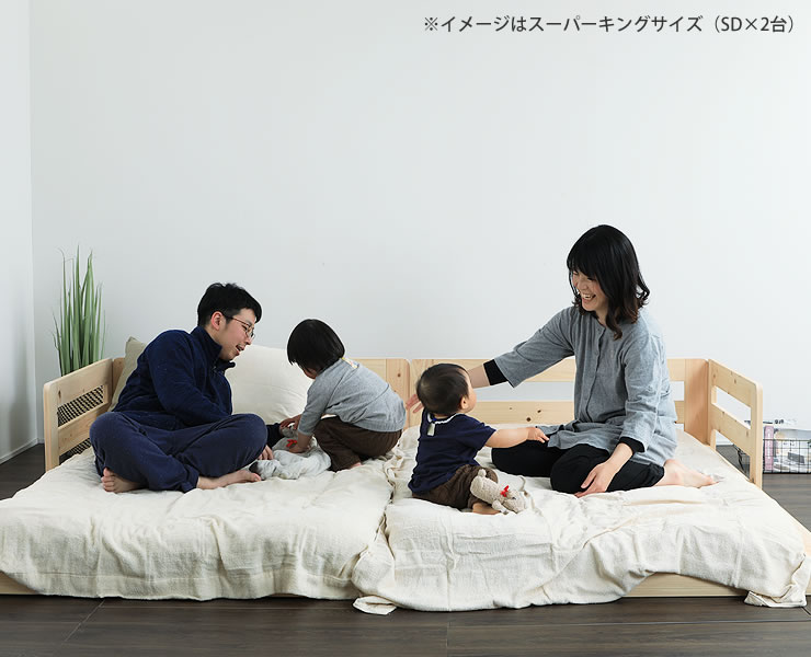 同シリーズのベッドを連結すれば大きなサイズのファミリーベッドとして使うことが出来ます。お子さまが生まれたら親子で川の字で眠れる楽しみがあります。またご夫婦でゆったり使いたい場合にもおすすめです。