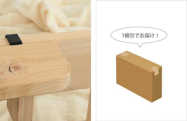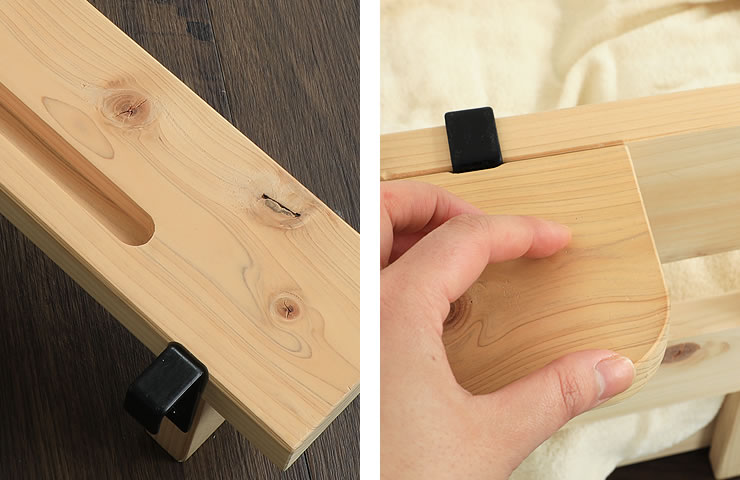 国産ひのき材を使用しています。ひのき材独特の爽やかな香りには天然のリラックス成分が含まれており、寝室にいながら森林浴気分を味わうことができます。