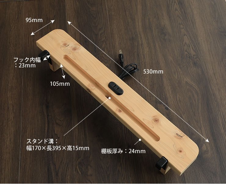 | サイズ | ■本体 幅95×長530×高105(mm) ■スタンド溝 幅17×長395×高15(mm) |