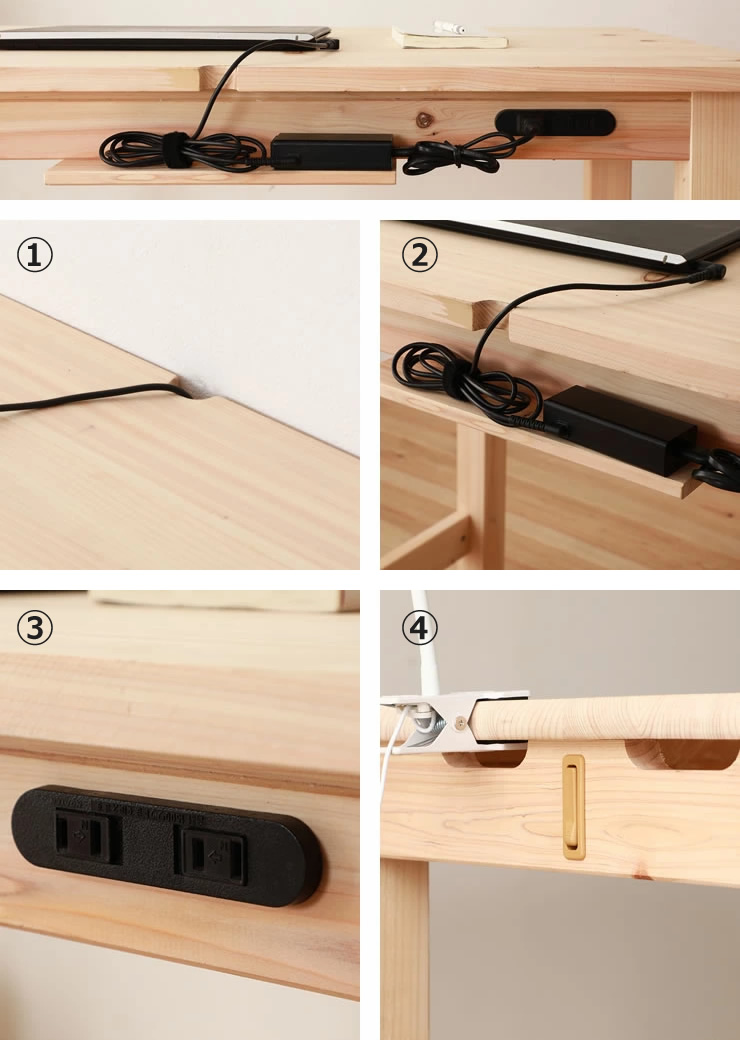 背面にコンセントを付けることで、配線関係が背面に収まり、机の上がすっきりと収まります。(2口 1500W)
