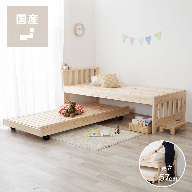 天然ひのきの香りが心地良い、島根県産・高知四万十産ひのきをふんだんに使用した親子ベッドです。下段は収納スペースとして活用できるため、お部屋を広く使うことができます。上段下段を別々に使えるので、お子様の成長とともに長く使えるベッドです。