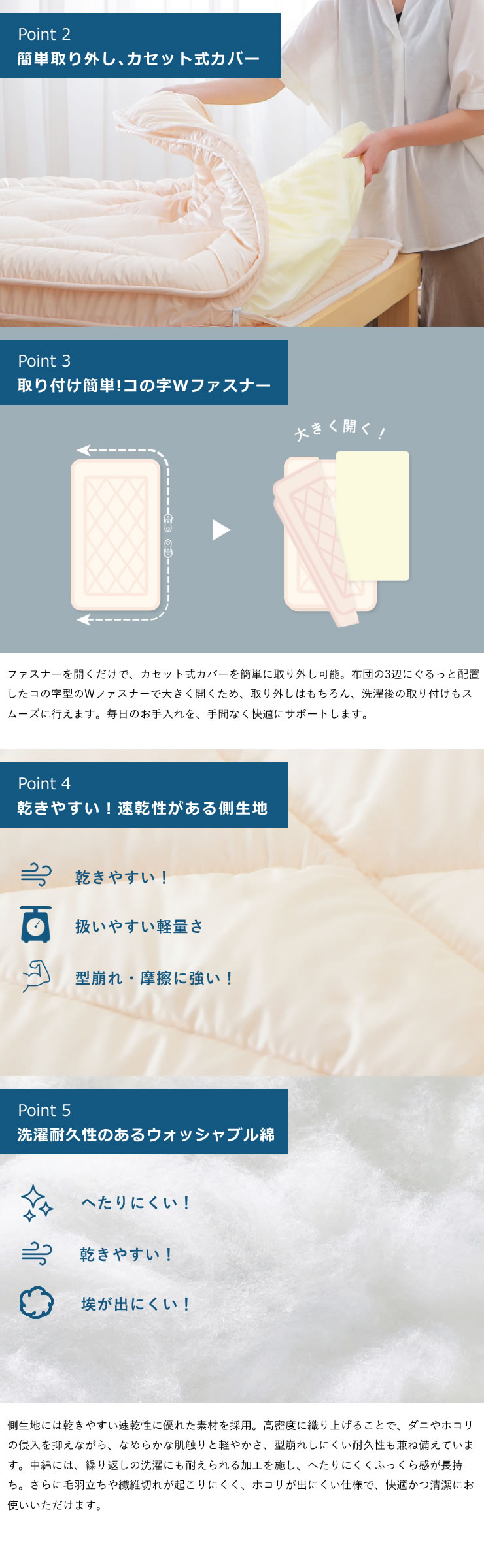 抗菌・防臭・防ダニ・吸汗速乾の中綿