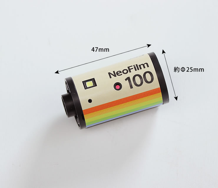 懐かしいフィルムカメラのカートリッジ型のデジタルカメラ。重量25gの超軽量ボディでバッグやポケットに忍ばせやすいサイズ感です。