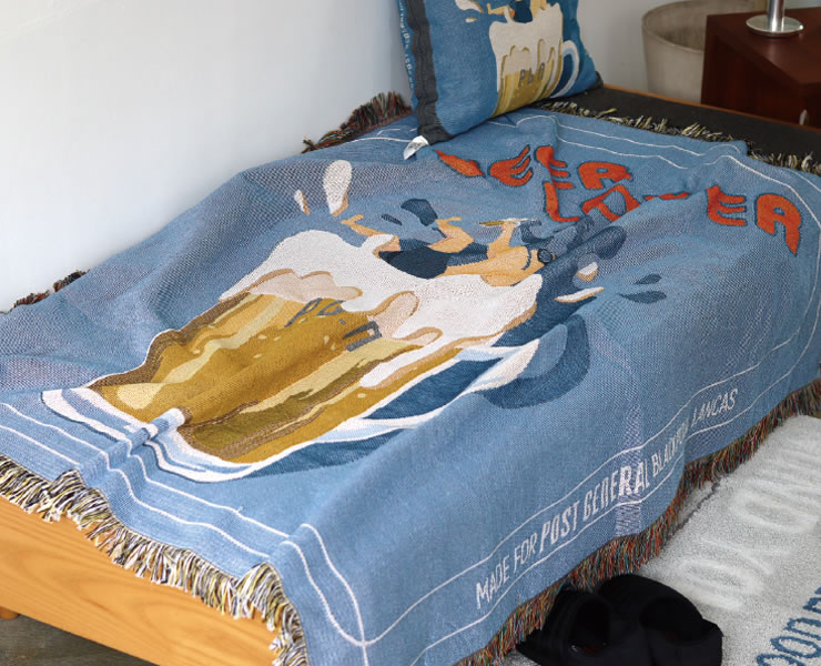 ベッドカバー・ベッドスプレッドとして活躍する大きめサイズ。ベッドの上にさっとかけるだけで、ベッドメイキングは完了!