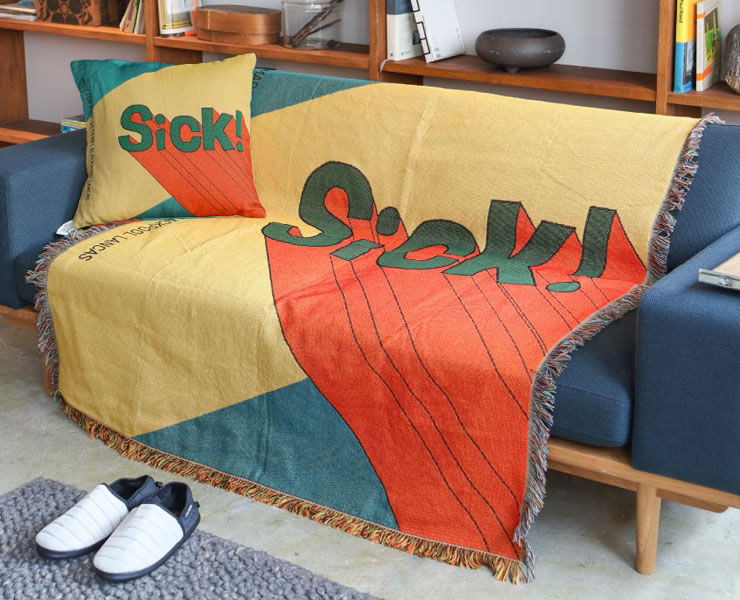 「SICK=最高!」「NEVER BETTER=絶好調!」など、遊び心のあるメッセージをデザイン柄と組み合わせ、空間に個性とリズムを添えます。