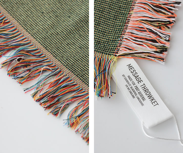 縁にはカラフルなフリンジが付いていておしゃれさを増しています。