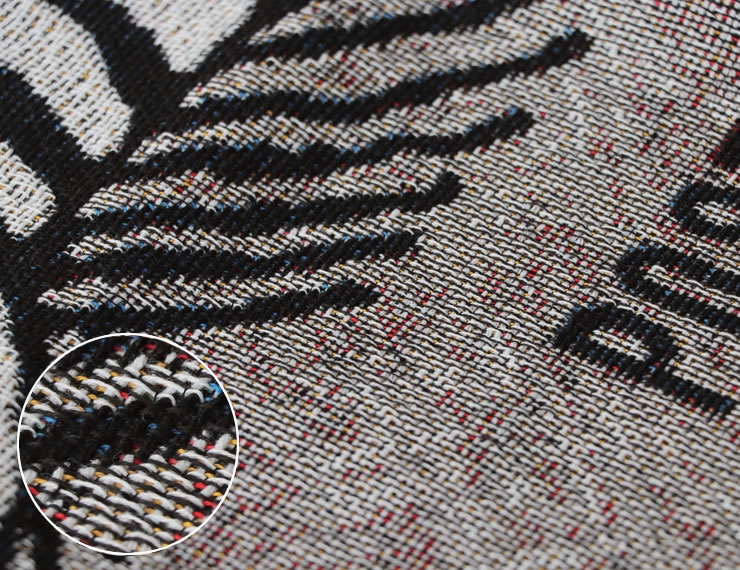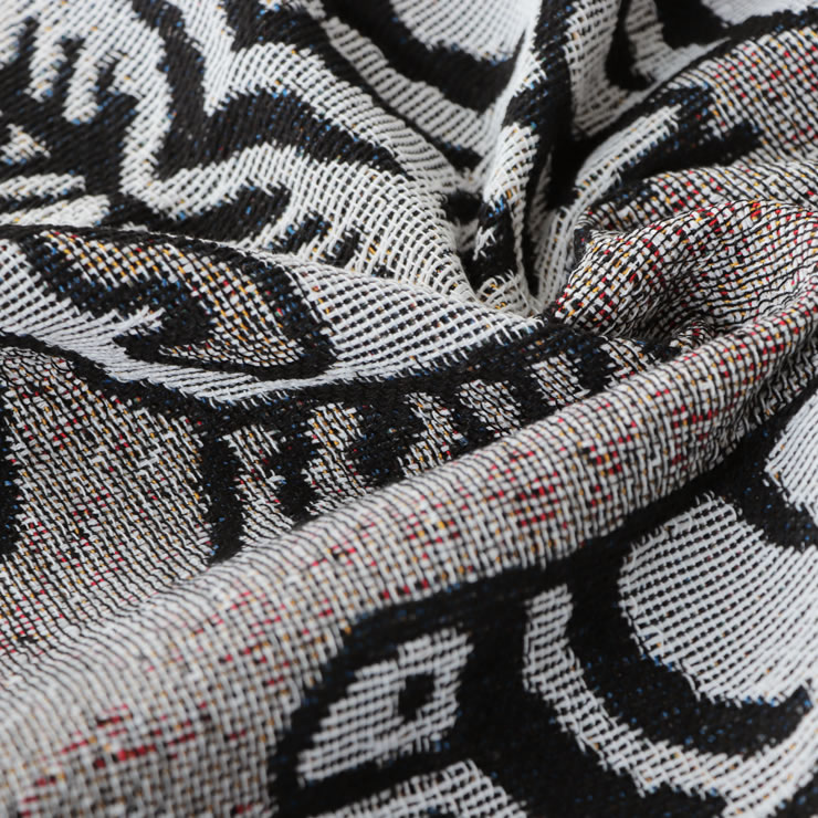 模様を印刷したプリント生地とは違い、糸を重ねながら柄を織ることで模様や柄に立体感が生まれるのがジャガード生地の魅力の一つです。生地自体に厚みがでるので、耐久性もあり、長くお使いいただけます。