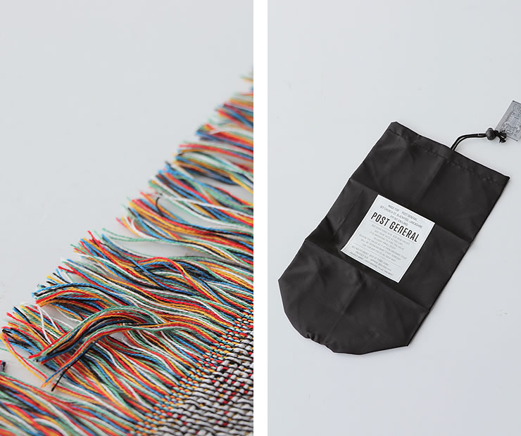 縁にはカラフルなフリンジが付いていておしゃれさを増しています。