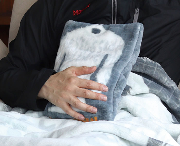 カバーには、フランネル生地のようなやわらかさと滑らかな手触りを再現した、上質なフリース素材を使用しています。汚れた際は手洗いも可能なので、汚れを気にせずお使いいただけます。※湯たんぽ本体はお洗濯できません