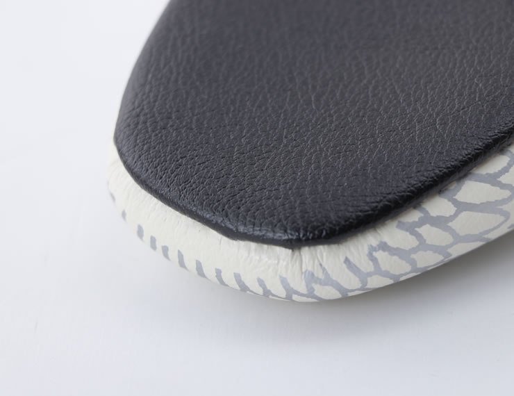 底は特殊な機械で捲くように包むくるみ底製法です。ミシンステッチが底にでている多くのスリッパとは違い、底面にステッチはありません。業務用で培った経験をもとに底が擦り切れても底が取れない丈夫な作りになっています。