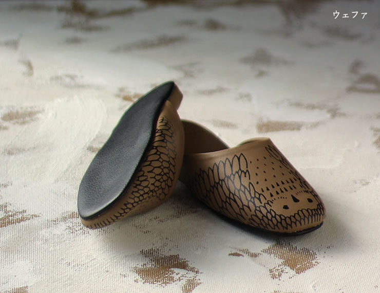 CLOAKROOMS OF .Fullerのパントュフル(スリッパの意)は日本の小さな工場でひとつひとつ人の手を介して作られているため、同じような海外製品と比べてもきれいで、そして、美しく、スマートにつくられています。使っていただくことで、ひとの手の温もりを感じ、日々を過ごしていただきたいとの思いで作られています。