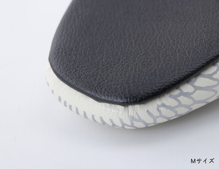 底は特殊な機械で捲くように包むくるみ底製法です。ミシンステッチが底にでている多くのスリッパとは違い、底面にステッチはありません。業務用で培った経験をもとに底が擦り切れても底が取れない丈夫な作りになっています。