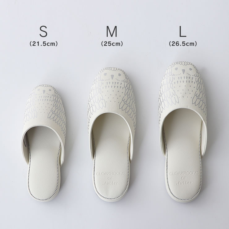 CLOAKROOMS OF .Fullerのパントュフル(スリッパの意)は日本の小さな工場でひとつひとつ人の手を介して作られているため、同じような海外製品と比べてもきれいで、そして、美しく、スマートにつくられています。使っていただくことで、ひとの手の温もりを感じ、日々を過ごしていただきたいとの思いで作られています。