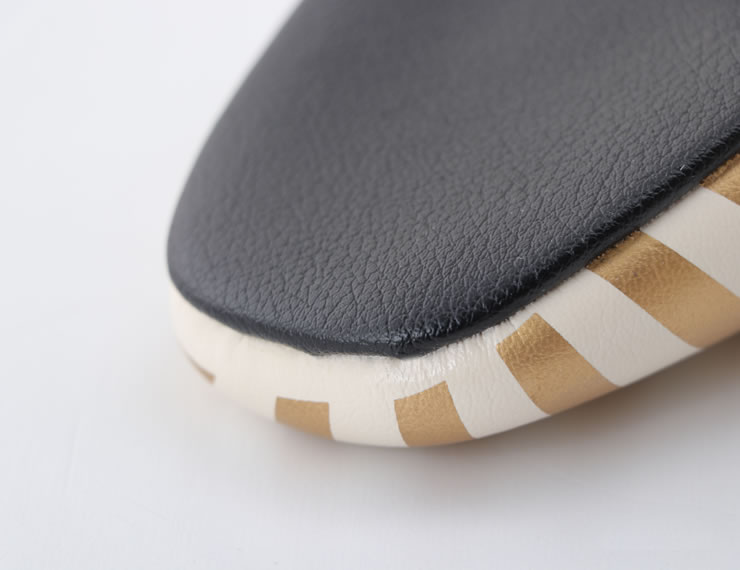 底は特殊な機械で捲くように包むくるみ底製法です。ミシンステッチが底にでている多くのスリッパとは違い、底面にステッチはありません。業務用で培った経験をもとに底が擦り切れても底が取れない丈夫な作りになっています。