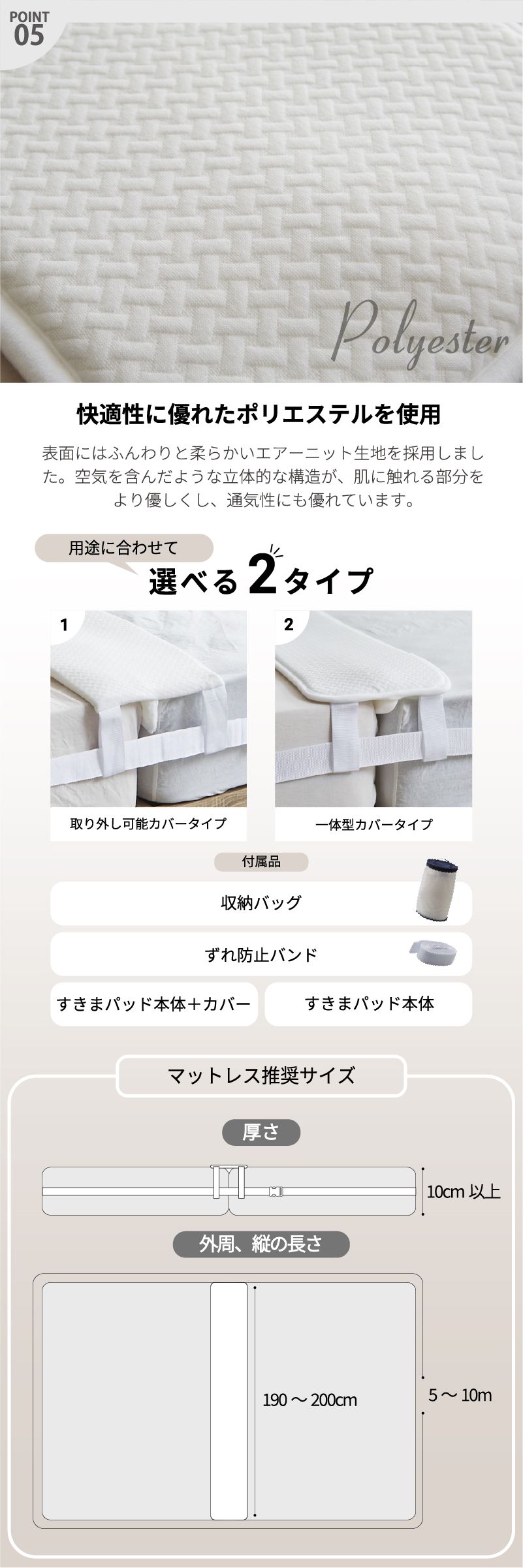 | 素材 | 表地・裏地:エアニット(ポリエステル100%) 詰め物:ウレタンフォーム |
