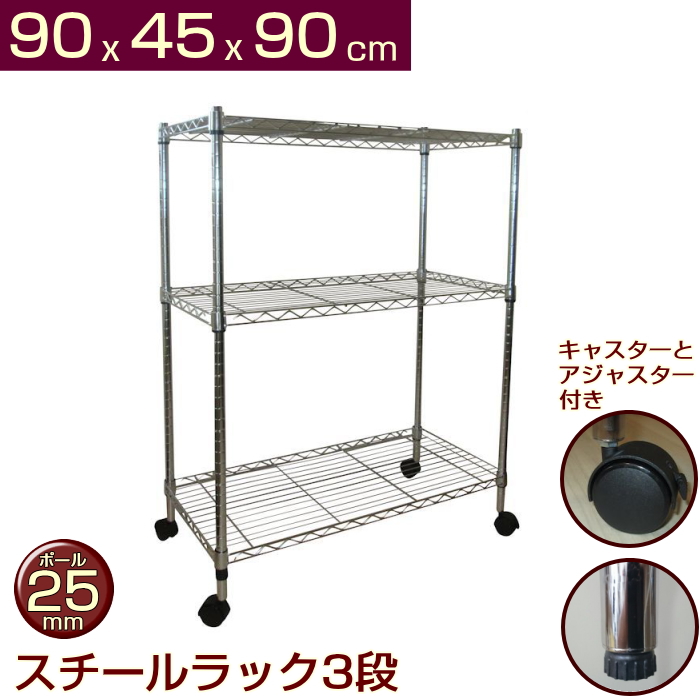 ※スチールラックの棚板部分の幅が90cm、奥行きが45cmとなります。 ポール部分を含めた幅が91cm、奥行き46cmとなります。